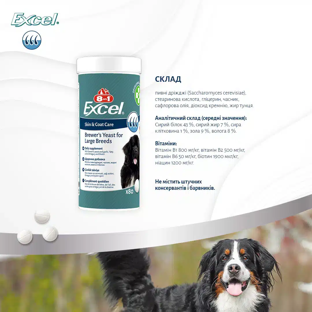 Пивні дріжджі для великих порід собак 8in1 Excel Brewers Yeast Large Breed
