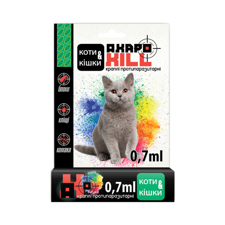 Акарокіл — протипаразитарні краплі для котів від українського виробника Укрзооветпромпостач. Піпетка об’ємом 0,7 мл розрахована на одну обробку. Доступний за ціною засіб для базового захисту від зовнішніх паразитів.