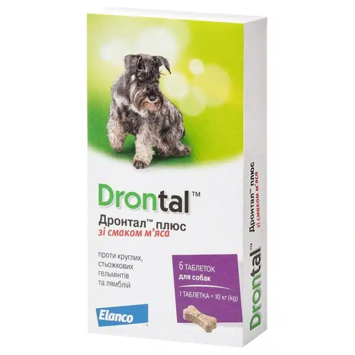 Антигельмінтні таблетки Дронтал плюс для собак зі смаком м'яса, 6 таб