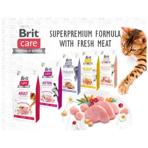 Brit Care Cat Sterilized Sensitive – це суперпреміальний беззерновий гіпоалергенний корм для стерилізованих котів з чутливим травленням.