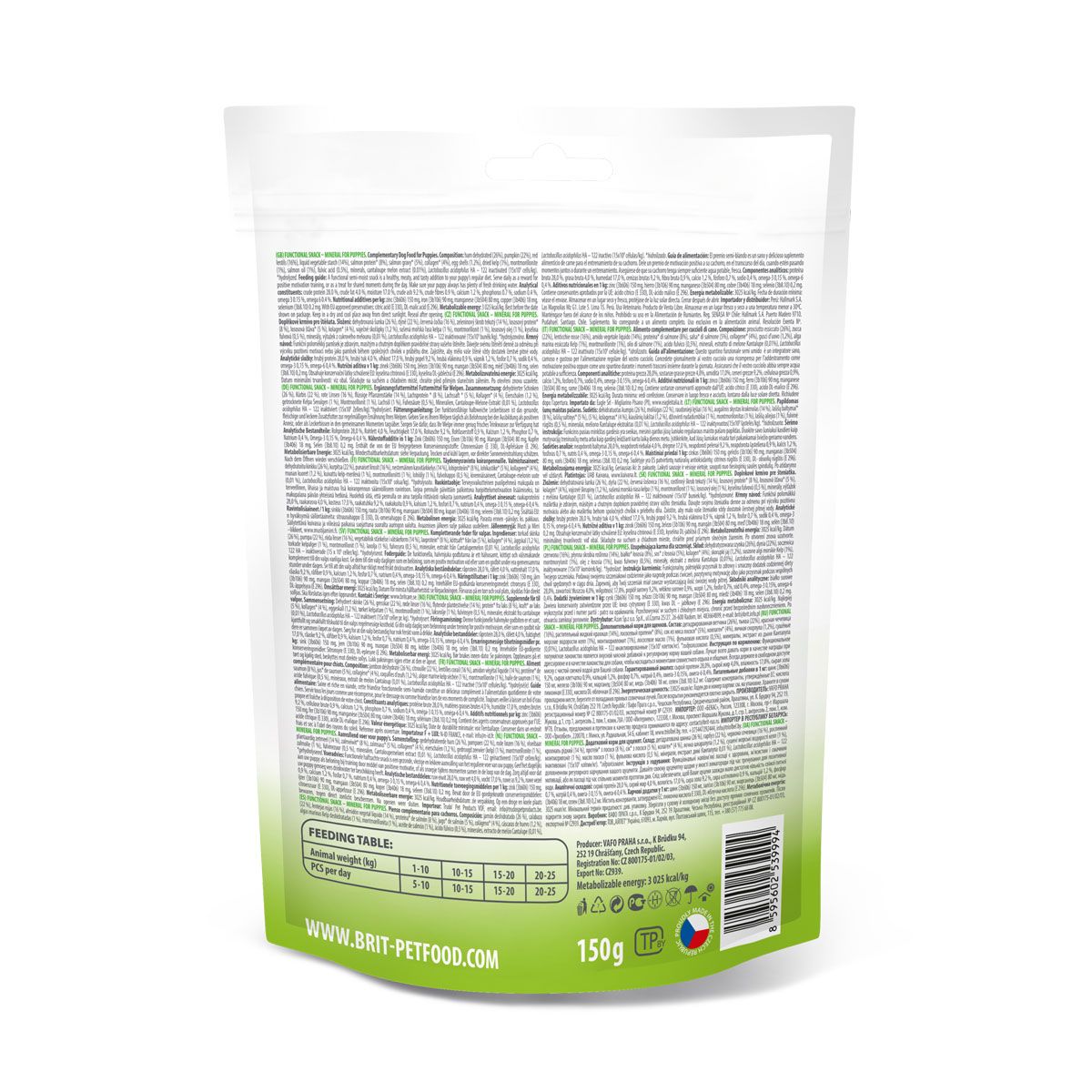 Brit Care Mineral з шинкою для цуценят підтримують мінеральний баланс зростаючого організму. Шинка має привабливий смак для молодих собак. Беззерновий склад без курки. Функціональні ласощі у пакуванні 150 г.