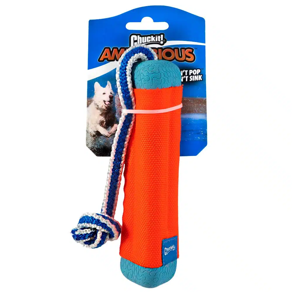 Іграшка CHUCKIT! AMPHIBIOUS BUMBER – апорт на шнурку для собак малих розмірів. Плаваючий апорт з ременем – ідеальна іграшка для собак, що люблять воду. Ремінь з міцного нейлону. Піна з ефектом пам’яті витримує багаторазове кидання та сприяє тривалому використанню, а м’який та міцний матеріал не травмує пащу вашого собаки. Нековзний ремінь дозволяє міцно тримати і легко направляти кидки. Ручка-мотузка із вузлами забезпечує міцний захват і тримання. Добре тримається на поверхні води, не тоне. Завдяки яскравому дизайну можна легко побачити у високій траві або на воді. Відмінно підходить для інтерактивної гри. Легко очищується після інтенсивних перетягувань канату.