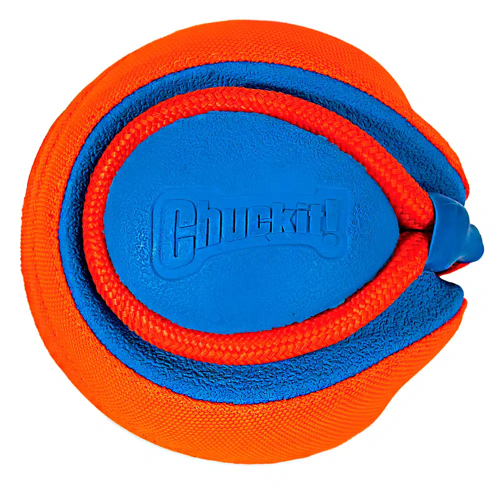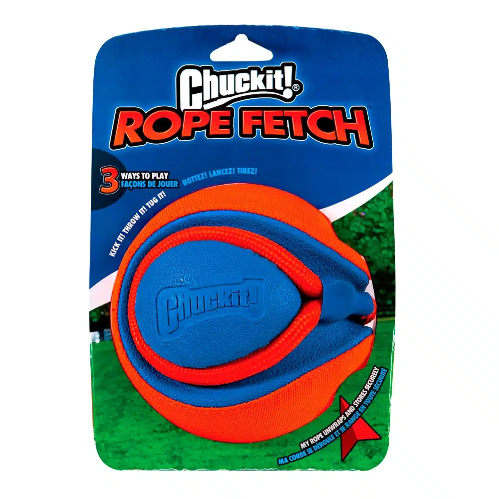 Chuckit! Rope Fetch легкий м’яч на мотузці для собак. Мотузка дає змогу кидати м’яч далі та зручніше. М’яч легкий, підходить для тривалих тренувань. Конструкція розрахована на апортування.