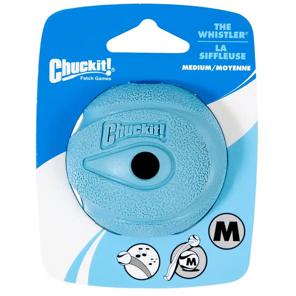 На старт! Увага! Лови! З м’ячем CHUCKIT! THE WHISTLER гра стане ще цікавішою та захопливішою для вашого улюбленця. М’яч-стрибун із чотирма отворами утворює свист у повітрі, щоб привернути та зосередити на собі увагу собаки. Надійний, зроблений з гуми, що витримає тривале користання. Легко миється, протистоїть бруду та слизу, ідеально підходить для зовнішнього використання. Щоб зробити враження ще яскравішими, використовуйте запускач CHUCKIT! для забросу на великі відстані. Увага: швидко літаючі м’ячі можуть спричинити травми. Не використовуйте виріб для націлювання та кидання безпосередньо на людей чи тварин. Не для використання у приміщенні.