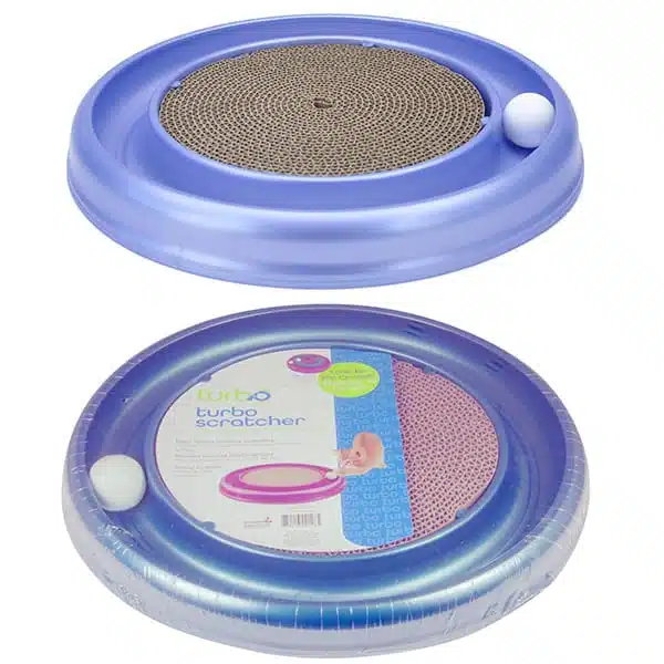 Coastal Turbo Scratcher поєднує інтерактивну іграшку та картонну кігтеточку. М’яч котиться по колу, а картон у центрі дає змогу точити кігті. Кіт чергує полювання на м’яч із точінням кігтів. Картон змінний, можна докуповувати вкладки.