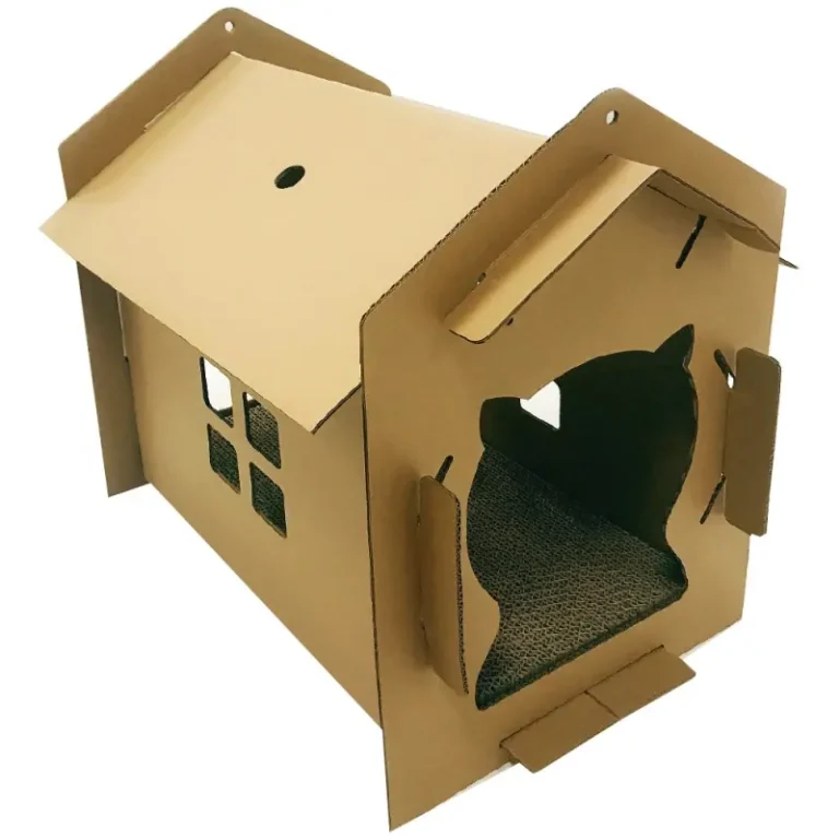 Дряпка-будиночок CROCI Villa Mono зроблена з гофрокартону розміром 42x35x50 см. Картон приваблює котів для точіння кігтів, а отвір слугує входом до затишного укриття. Конструкція збирається без клею та інструментів. Гофрокартон екологічний і підлягає переробці після зношування.