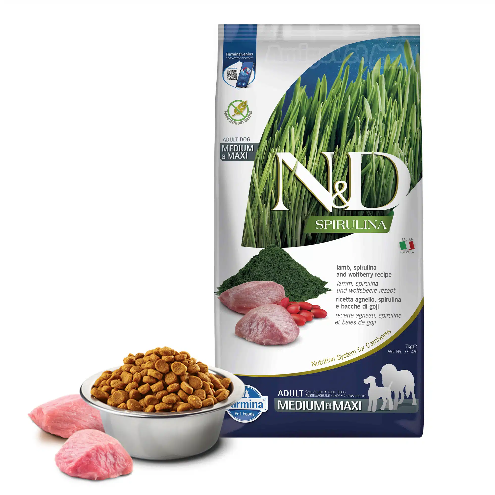 N&D Spirulina – це нова і перша лінія кормів, розроблена Farmina для підтримки благополуччя активних котів і собак. Зі спіруліною, суперінгредієнтом, повним чудових поживних властивостей і переваг для здоров’я. Виготовлений без зернових і з більш ніж 90% білка тваринного походження.