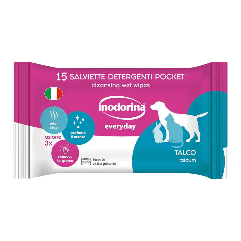 Вологі серветки Inodorina Refresh Pocket Talco для собак та кішок з ароматом тальку, 15 шт