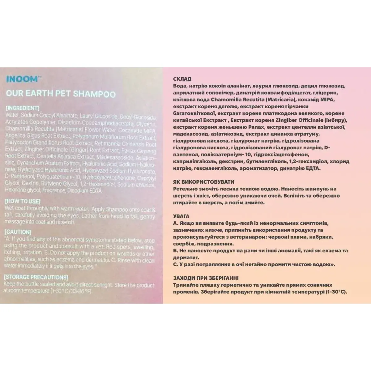 • Сертифікована клінічна безпека: INOOM Our Earth Pet Shampoo пройшов ретельне клінічне випробування та отримав