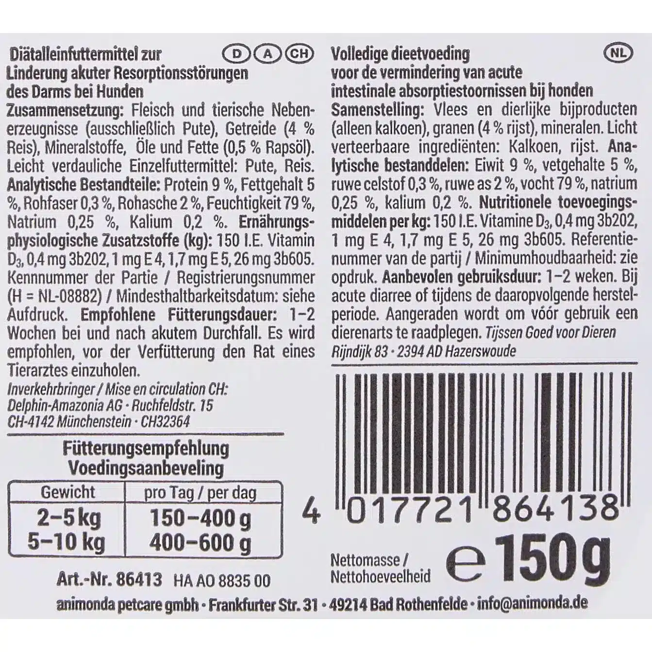 Animonda Integra Protect Intestinal з індичкою для собак при розладах шлунка. Індичка як єдине джерело білка легко перетравлюється. Порція 150 г підходить для частого дробного годування.