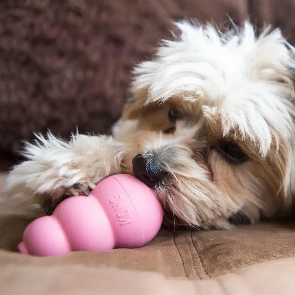 Ветеринарні лікарі та кінологи рекомендують начиняти іграшку ласощами чи кормом ‒ це допоможе собаці звикнути до іграшки, витратити надлишок енергії, подолати тривогу від розлуки з власником, напрацювати належні навички жування, а також скоректує поведінку собаки.