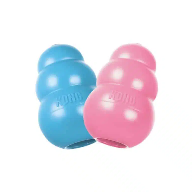 Іграшка груша-годівниця KONG Puppy представлена в блакитному та рожевому кольорах.