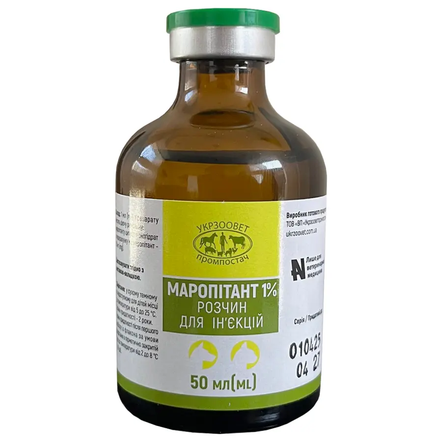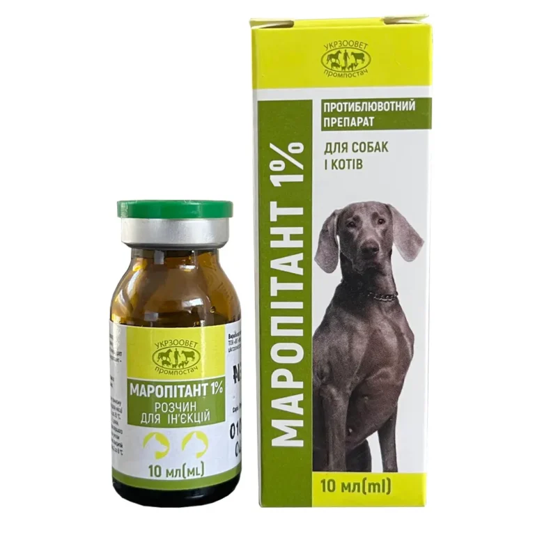 Маропітант 1% — протиблювотний ін’єкційний розчин для котів та собак. Доступний у флаконах 10 мл та 50 мл. Діюча речовина маропітант блокує блювотний рефлекс. Вводиться ветеринарним лікарем.