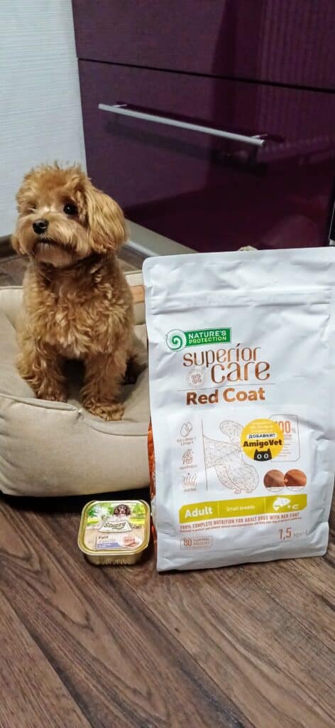Єдиний сухий корм, який наш вибагливий песик їсть із задоволенням. Якість волосся та колір також стали кращими. Рекомендація для руденьких песиків 100%.