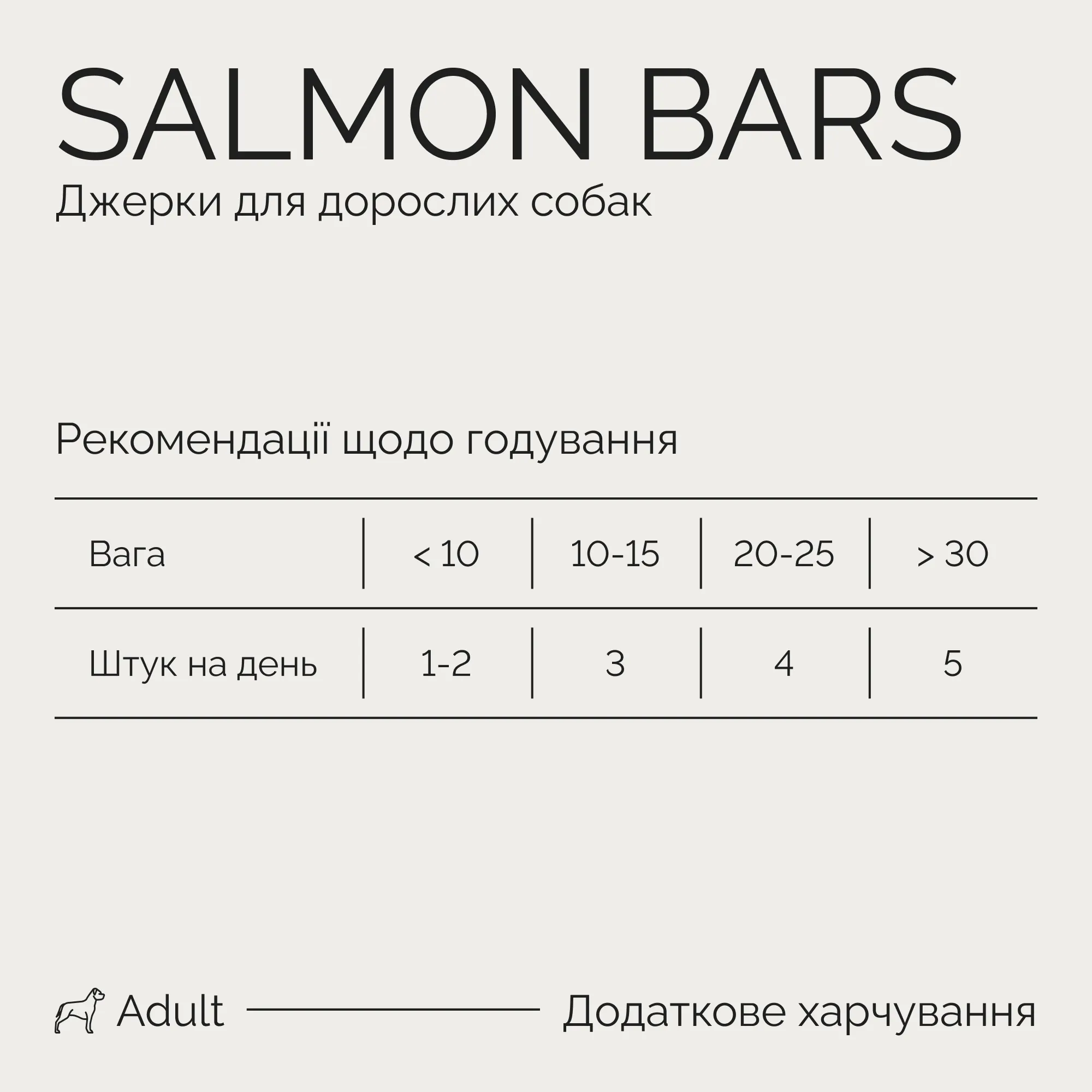 Рекомендації з годування: собаки до 10 кг – 1-2 штуки на день, собаки 10-15 кг – 3 штуки на день, собаки 20-25 кг – 4 штуки на день, собаки понад 30 кг – 5 штук на день.