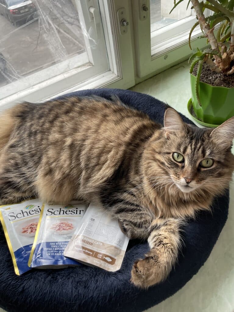 - справжнє філе тунця (51%) та морського окуня (4%), виловлених у відкритому морі — цінне джерело легкозасвоюваного тваринного білка, потрібного для підтримання енергії, м’язової маси та загального тонусу;
