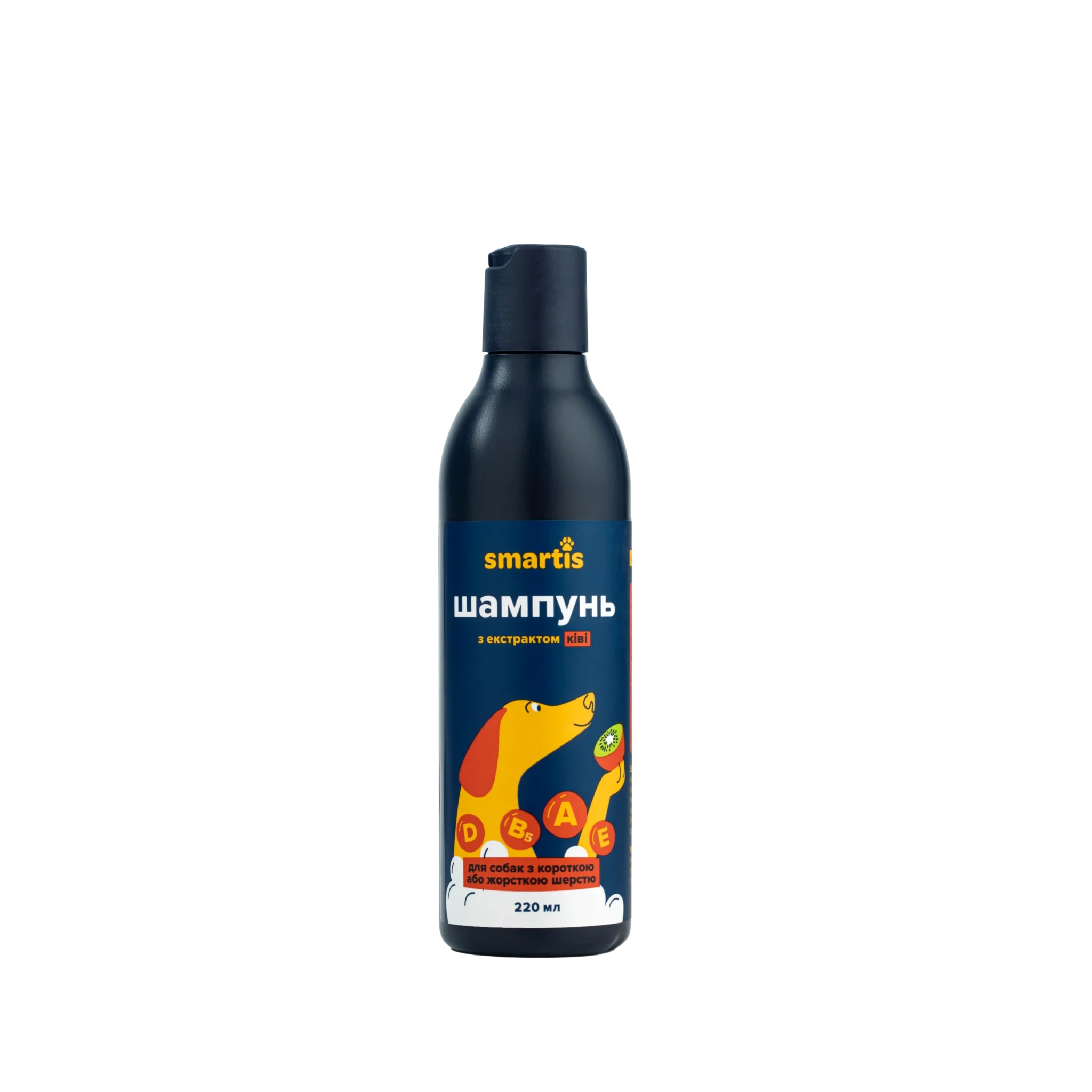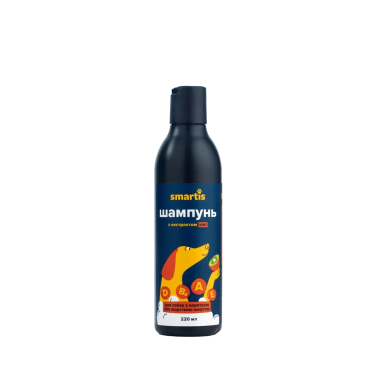 Шампунь Smartis для короткошерстих собак очищує гладку шерсть та додає здорового блиску. Формула адаптована під потреби короткої щільної шерсті. Засіб легко наноситься та швидко змивається.