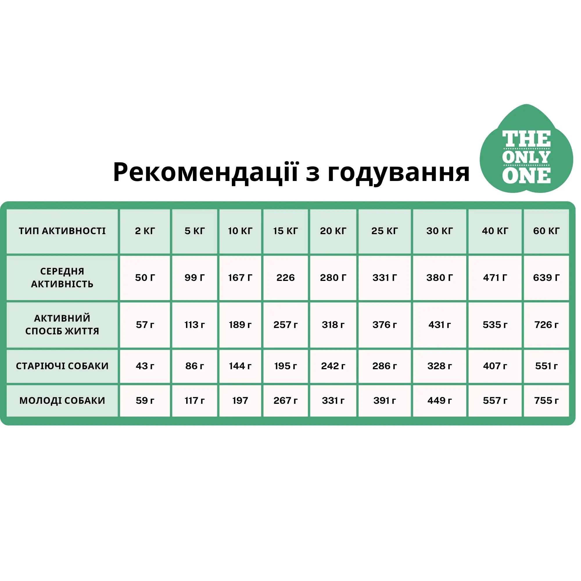 Інструкція з годування: для собак всіх порід та всіх стадій життя. Рекомендоване денне дозування наведене у таблиці (кількість є орієнтовною). Забезпечте тваринам постійний доступ до свіжої води.