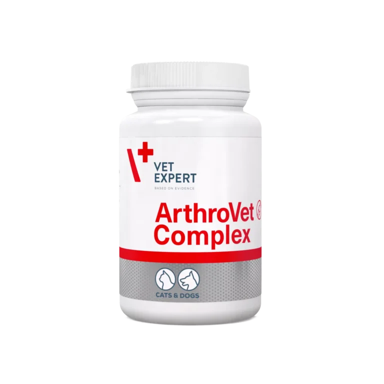 Vet Expert ArthroVet Complex (Вет Експерт Артровет Комплекс) – посилений комплекс для профілактики та лікування функціональних проблем із суглобами та хрящами у котів і собак. Містить глюкозамін, хондроїтин, гіалуронову кислоту, вітамін С і потужний рослинний комплекс, які на клітинному рівні відновлюють сполучні тканини, мають протизапальну, протинабрякову дію та помітно полегшують біль.