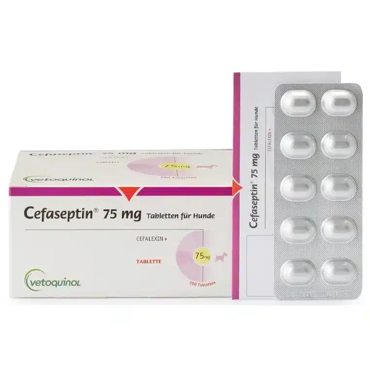 Цефасептин (Cefaseptin) від Vetoquinol — антибіотик зі смаком печінки для собак і котів. Доступний у дозуваннях 75 мг, 300 мг та 750 мг. Смак печінки полегшує дачу таблетки тварині. Призначення, дозу та тривалість курсу визначає ветеринарний лікар.